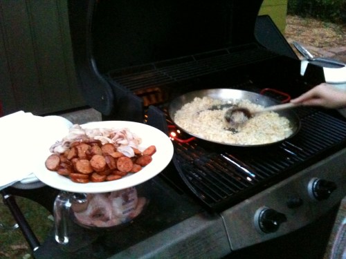 Eventually, we got started on the paella, cooking it with ambition on the grill.