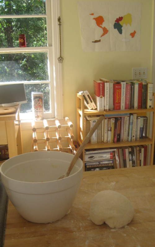 The cake came out beautifully. It’s meant to have an orange-syrup glaze, and a sprinkling of chunky sea salt. We didn’t have confectioner’s sugar, and went without the added sweetness, which resulted in a restrained, fruit-dense crumb with a delicate breadiness. I’ll make it again.