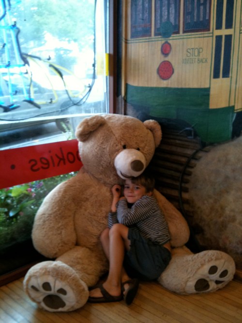 The rest of the afternoon was down-time for me, but Jack was ready for more socializing, so we invited Lulu up from apartment 1. She and Jack play together so agreeably. They played “store,” which involved emptying Jack’s clothing drawers onto the bed and making play money. They drew and painted pictures of “ghosts eating people.” They played “boat” in a printer box, and rode up and down the hallway on Jack’s scooter. We made kettle popcorn, and Lulu told us that her dad is such a kettle corn expert that every kernel is popped. She also told us it was her mom’s fortieth birthday. Happy birthday, Anna!