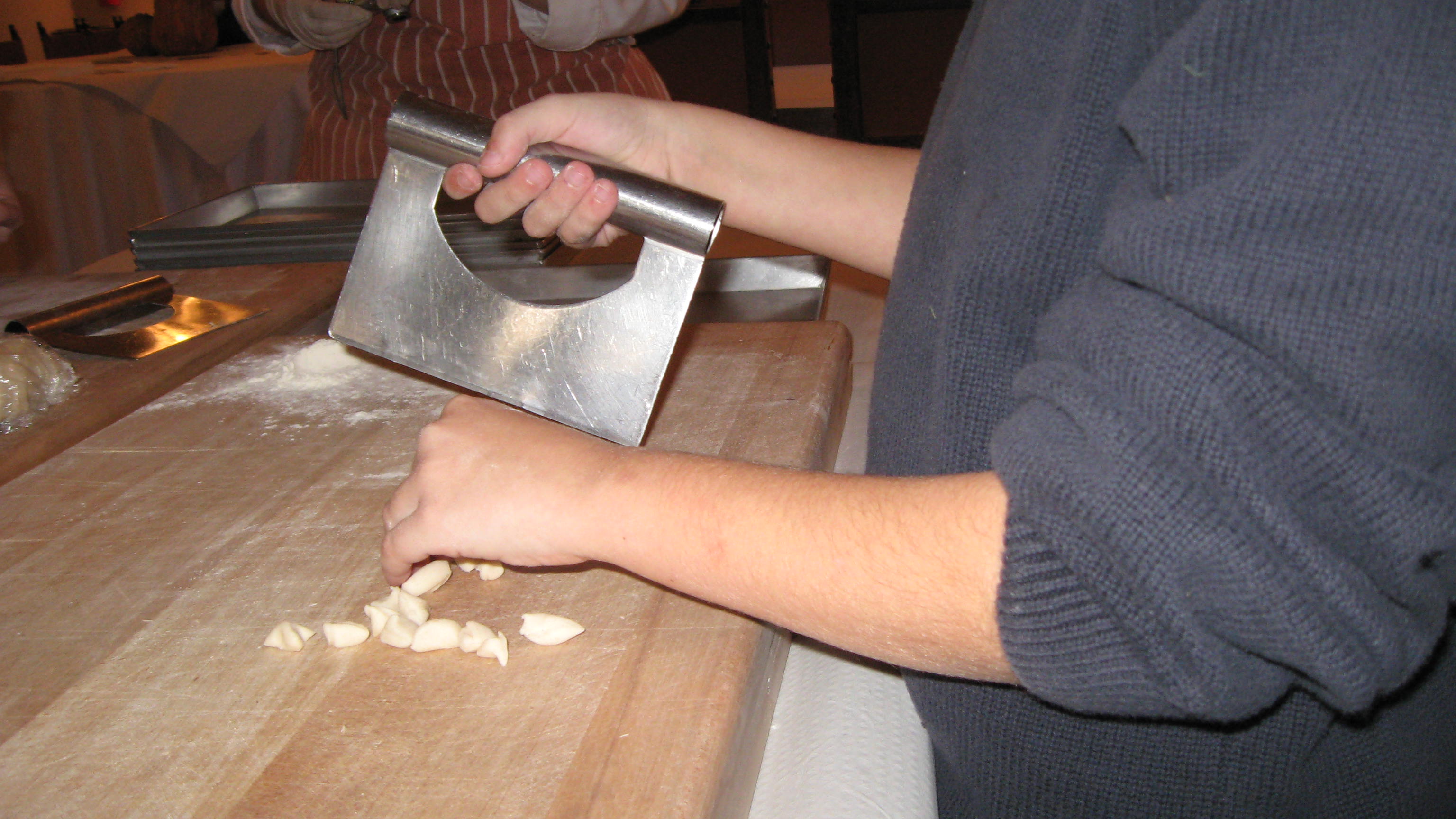 One night, instead of having pasta bianca, we went uptown to Lucia’s, where Peter had mussels served with this delicate chive-flower-sprinkled crostini: