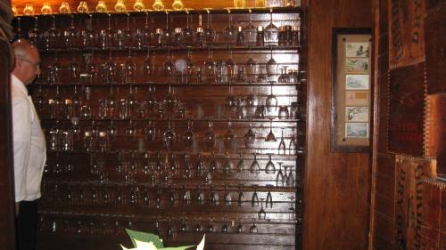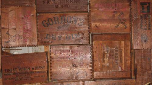 And the walls in our dining room, made of old liquor boxes, as if they were packed in a ship’s hold: