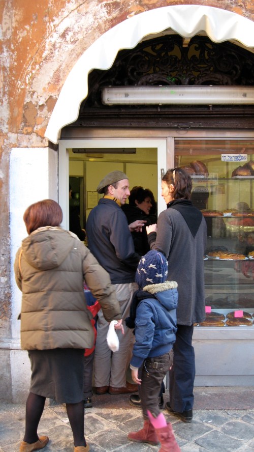 Late, too, I found out about Necci, a wonderful little cafe that does everything from breakfast pastries to toy-swaps for the kids with aperitivi for the parents. Jeannie, Sarah, and I went to Pigneto, a Roman neighborhood outside of the city center, last week, on a mission to taste the artisanal cornetti (Italian croissants). The chef, a British guy named Ben, is one of those admirable chefs who uses only local and seasonal ingredients and who is reviving old ways of making things. Jeannie and I had chocolate cornetti and agreed that they were the best we’d tasted in years. Light crunch to the pastry flakes—dark, warm chocolate within.